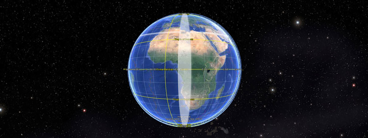 Under the Planetary Day Jupiter and the Planetary Hour Mercury, I asked that the Creator to cleanse and send out love to all of the areas of Mother Earth highlighted in the following image, this time between the latitudes E10° and E20°, all the way from the North Pole down to the South Pole: