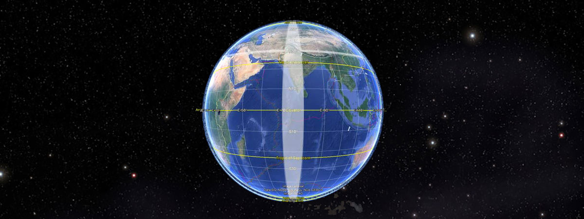 Once again, I asked that the Creator cleanse and send out love to all of the areas of Mother Earth highlighted in the following image, this time between the latitudes E70° and E80°, all the way from the North Pole down to the South Pole: