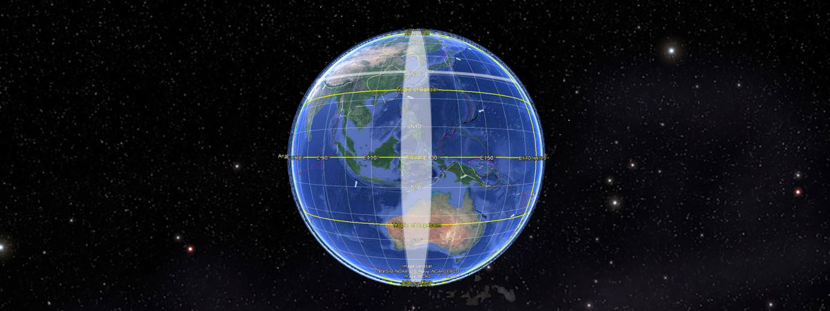 Areas of Focus For Day 25: Latitude E120° and E130° | Arctic Ocean—Laptev Sea—Olenyok Gulf—Russia—China—North Korea—South Korea—Japan—Bohai Sea—Yellow Sea—East China Sea—Taiwan—South China Sea—Philippine Sea—Babuyan Channel—Philippines—Lamon Bay—Tayabas Sea—Sibuyan Sea—Mindoro Strait—Visayan Sea—Leyte Gulf—Panay Gulf—Tanon Strait—Bohol Sea—Sulu Sea—Moro Gulf—Davao Gulf—Celebes Sea—Indonesia—Molucca Sea—Halmahera Sea—Ceram Sea—Banda Sea—Flores Sea—Timor-Leste—Savu Sea—Timor Sea—Ashmore and Cartier Islands—Australia—Great Australian Bight—Southern Ocean—Antarctica