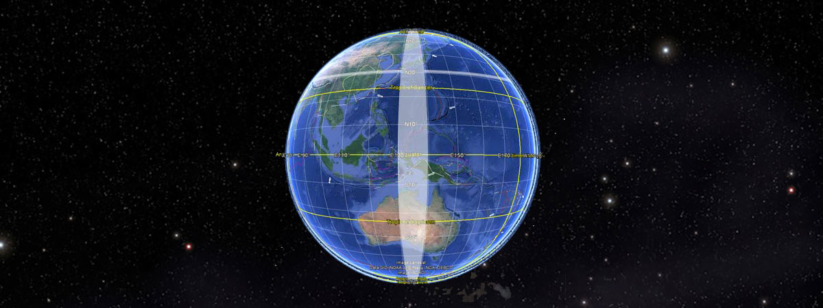 And performed the following prayer. Under the Planetary Day Mars, and the Planetary Hour Moon, I asked that the Creator cleanse and send out love to all of the areas of Mother Earth highlighted in the following image, this time between the latitudes E130° and E140°, all the way from the North Pole down to the South Pole: