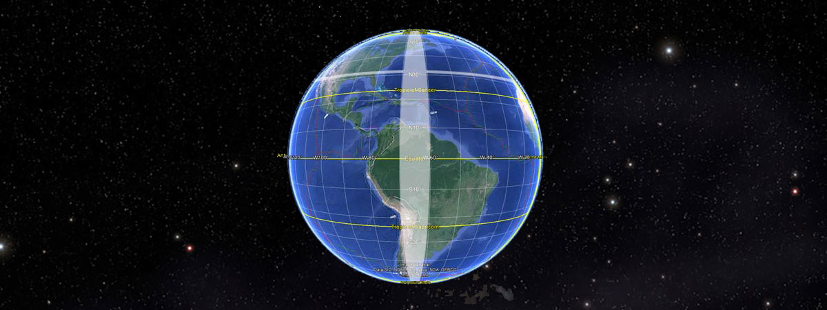 Once again, I asked that the Creator send out love to all of the areas of Mother Earth highlighted in the following image, this time between the latitudes W70° and W60°, all the way from the North Pole down to the South Pole: