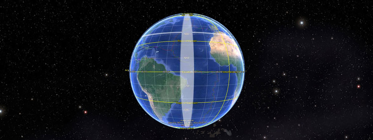 After setting up everything for my ceremony, I began praying. Under the Planetary Day Saturn, and the Planetary Hour Venus, I asked that the Creator cleanse and send out love to all of the areas of Mother Earth highlighted in the following image, this time between the latitudes W40° and W30°, all the way from the North Pole, down to the South Pole: